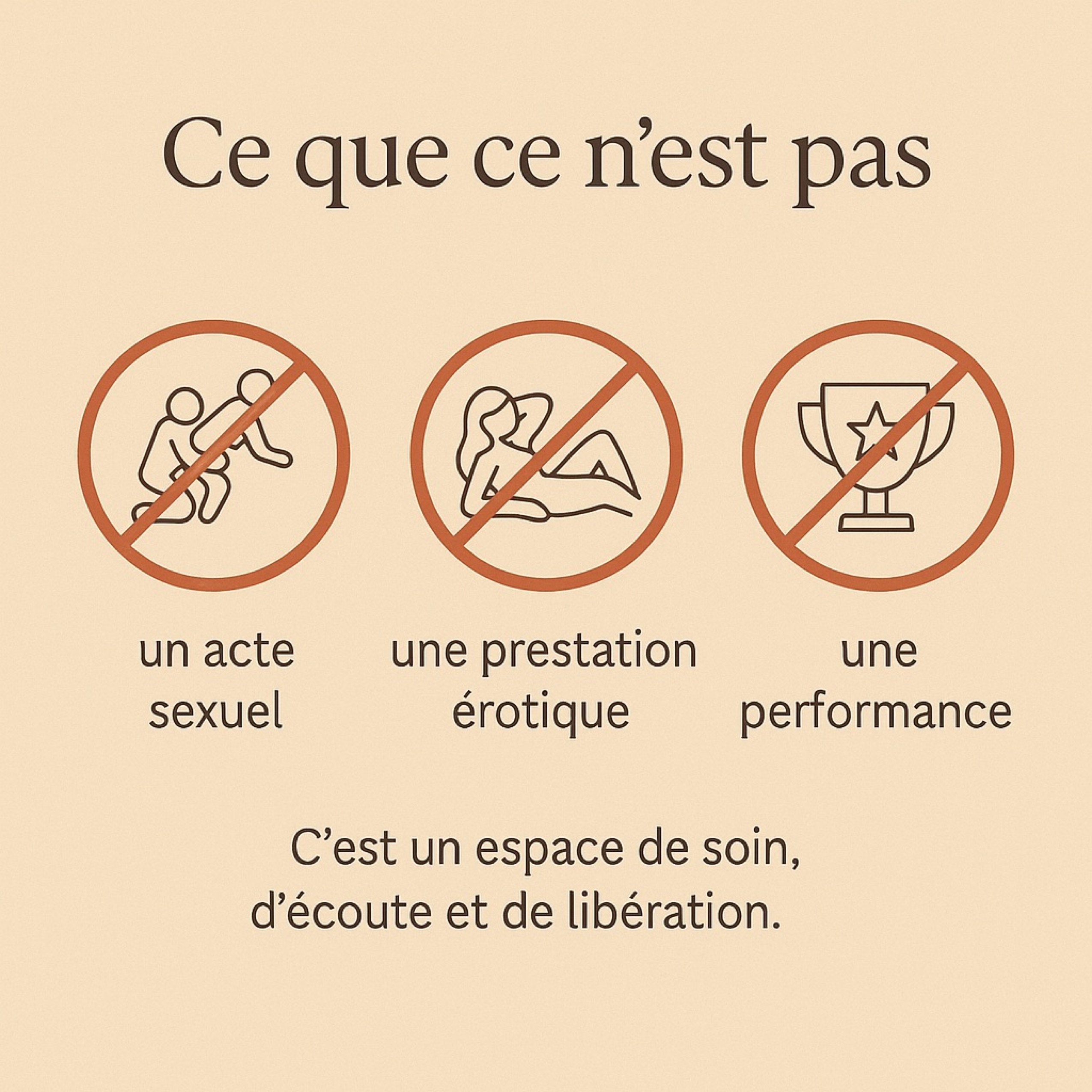 Il ne s’agit en aucun cas d’un acte sexuel, ni d’un soin médical, mais d’un massage profondément respectueux, non intrusif, et émotionnellement soutenant, lorsque pratiqué dans un cadre éthique.
